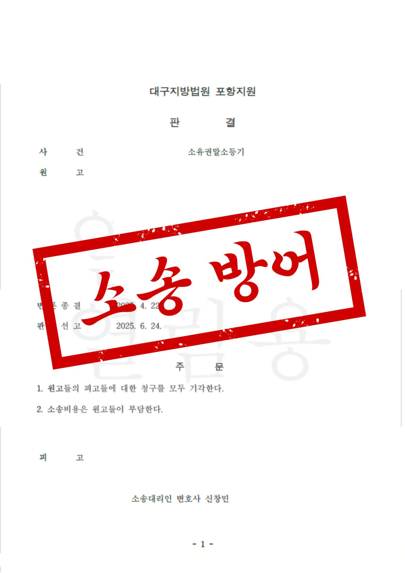 결국 의뢰인께선 상대방이 제기한 말소등기 소송을 방어하며 기존 부동산 소유권을 그대로 유지할 수 있었습니다.