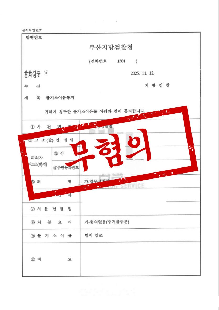 그 결과 수사기관은 업무상횡령 혐의에 대해 증거 불충분을 이유로 혐의없음(무혐의) 처분을 내렸습니다.