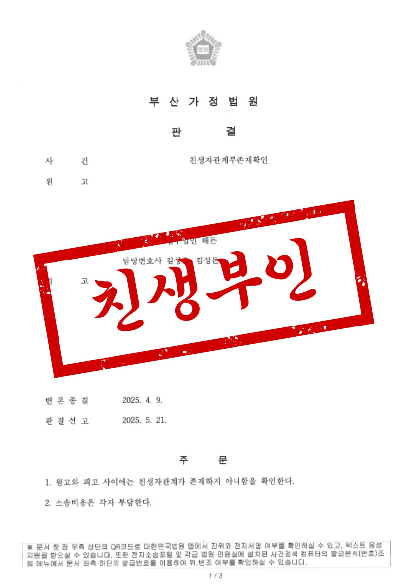 가족관계등록부상 본인이 아버지였지만, 출생 시기와 부부의 실질적인 관계를 돌아봤을 때 선뜻 납득하기 어려운 상황이었죠.